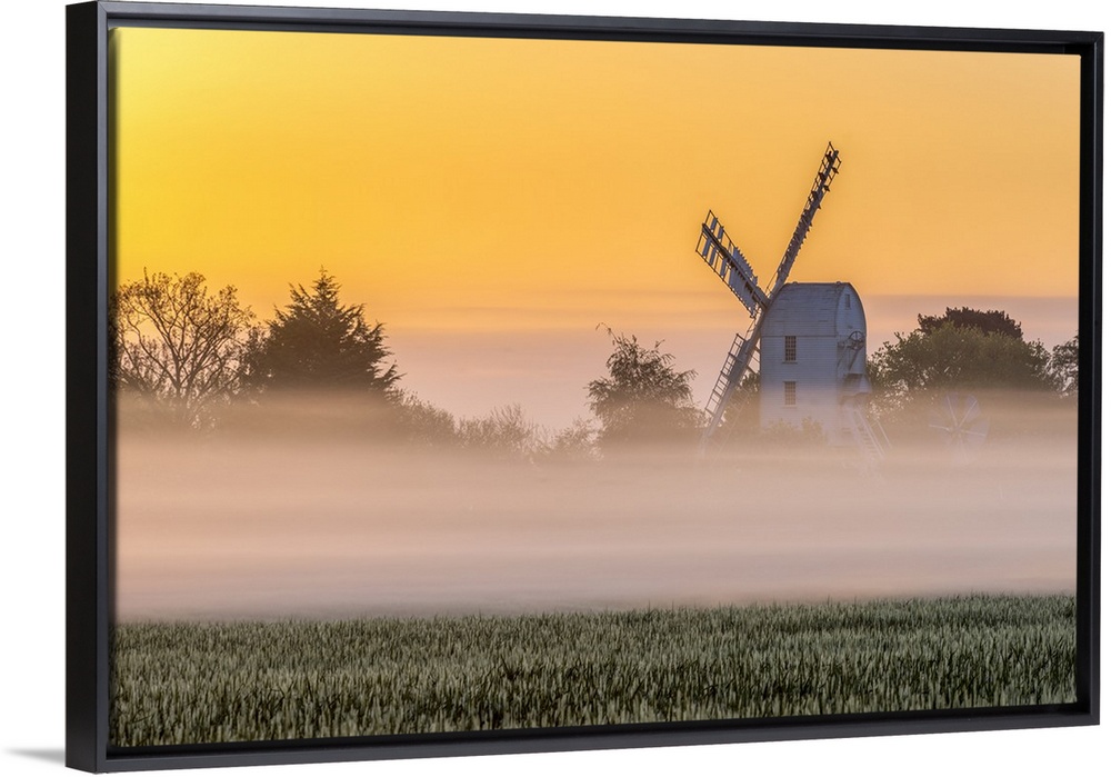 <p>UK, England, Suffolk, Saxtead Green, Saxtead Green Windmill at sunrise</p>