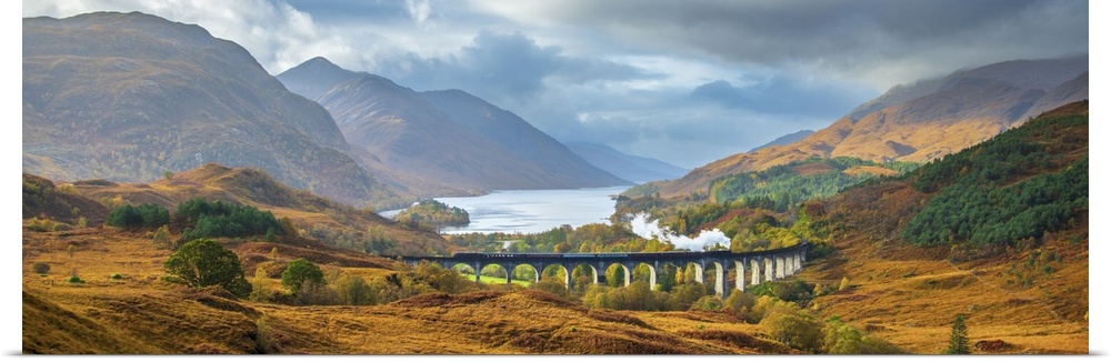 <p>UK, Scotland, Highland, Loch Shiel, Glenfinnan, Glenfinnan Railway Viaduct, part of the West Highland Line, made famous in JK Rowling's Harry Potter as the Hogwarts Express</p>