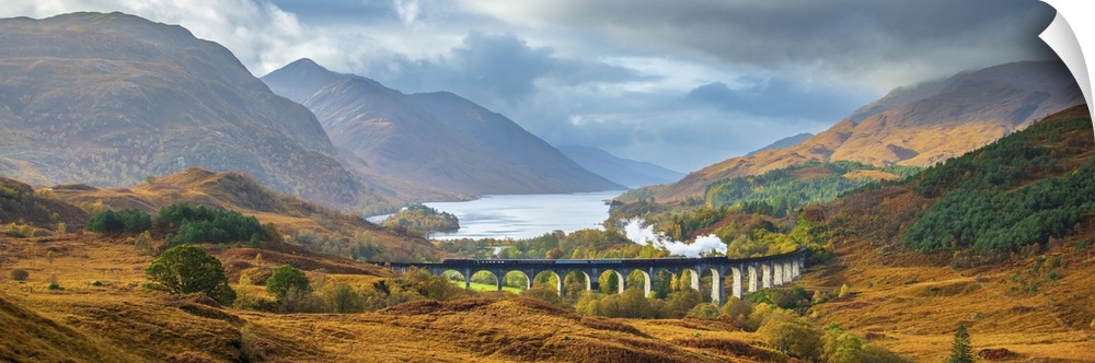<p>UK, Scotland, Highland, Loch Shiel, Glenfinnan, Glenfinnan Railway Viaduct, part of the West Highland Line, made famous in JK Rowling's Harry Potter as the Hogwarts Express</p>