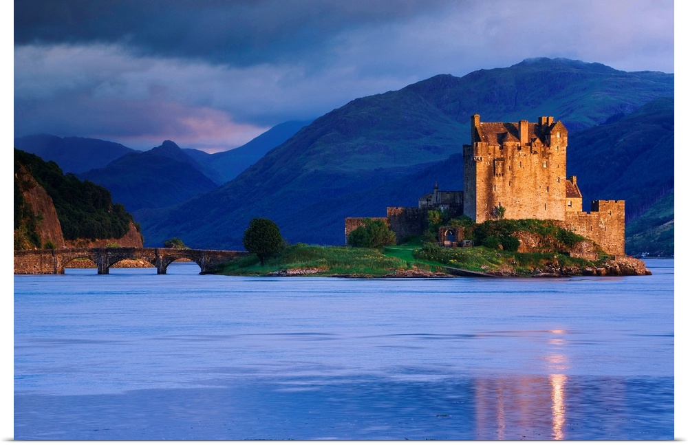 <p>United Kingdom, UK, Scotland, Highlands, Eilean Donan Castle, near Dornie village, and Loch Duich bay</p>