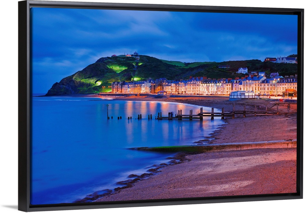 <p>View of the victorian seafront and promenade of the seaside town of Aberystwith, in the Ceredigion region of central Wales.</p>