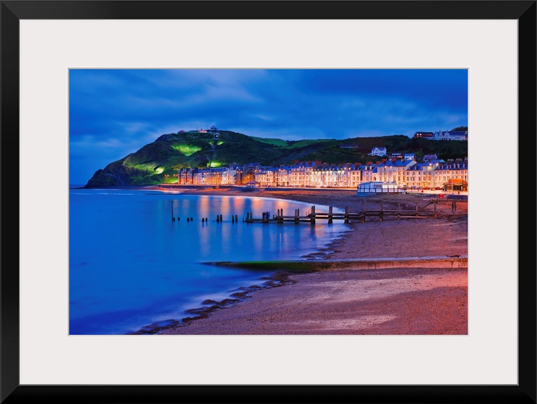<p>View of the victorian seafront and promenade of the seaside town of Aberystwith, in the Ceredigion region of central Wales.</p>