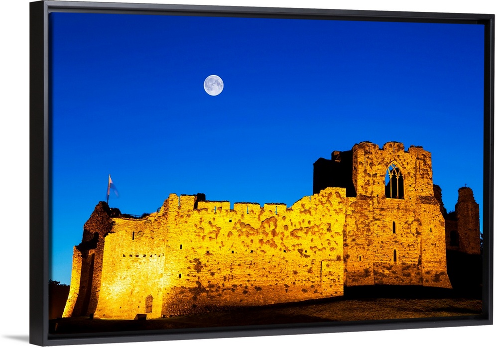 <p>UK, Wales, Gower Peninsula, Oystermouth Castle at Mumbles near Swansea by night.</p>