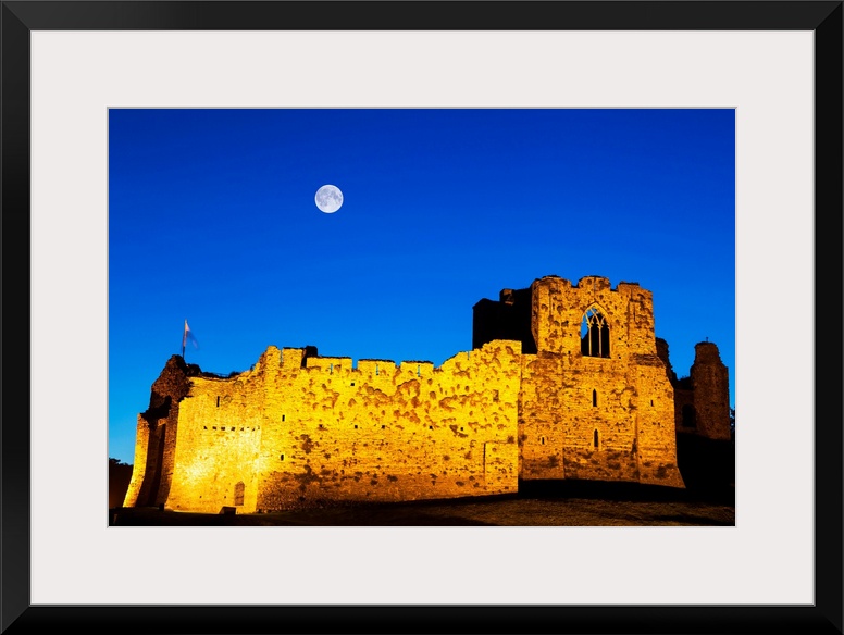 <p>UK, Wales, Gower Peninsula, Oystermouth Castle at Mumbles near Swansea by night.</p>