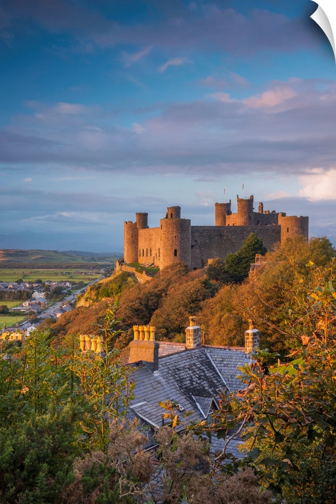 <p>Uk, Wales, Gwynedd, Harlech, Harlech Castle, Mountains Of Snowdonia National Park Beyond</p>