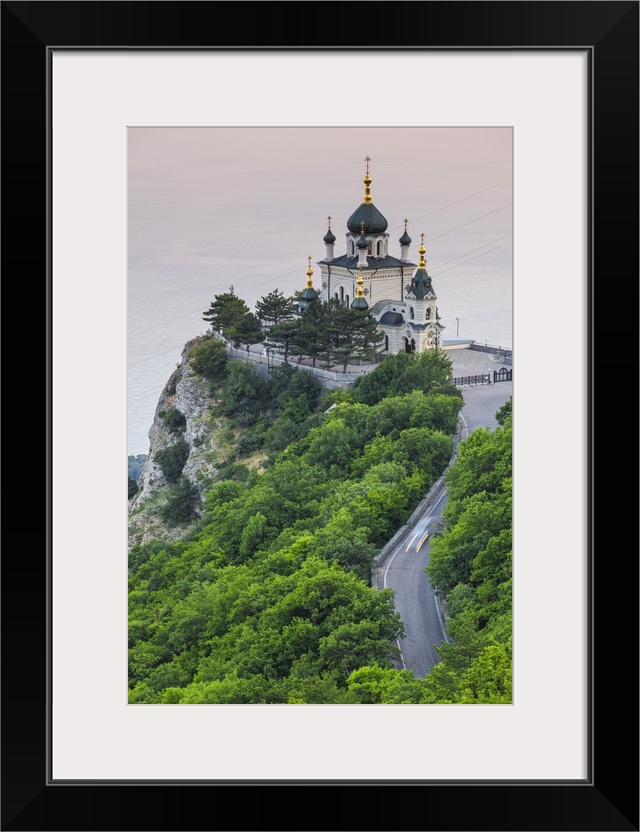 <p>Ukraine, Crimea, Foros, Foros church sitting on top of a cliff overlooking the Black Sea</p>