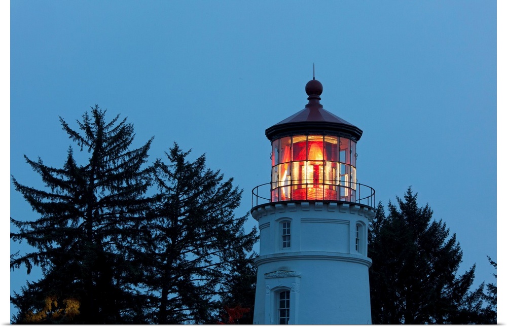 <p>Umpqua river lighthouse at twilight on the Oregon coast in the pacific northwest, Oregon, united states of America.</p>