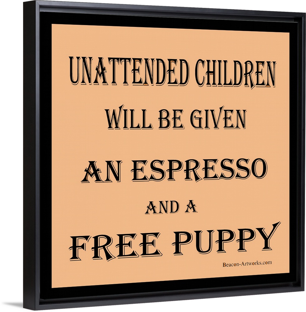 <p>Unattended Children Will be Given an Espresso And a Free Puppy. Funny signage for the concerned retailer.</p>
