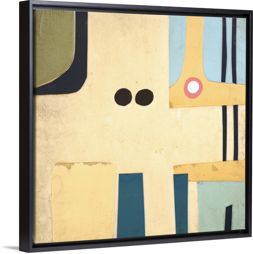 <p>Contemporary abstract painting with colorful shapes in a mid-century style.</p>