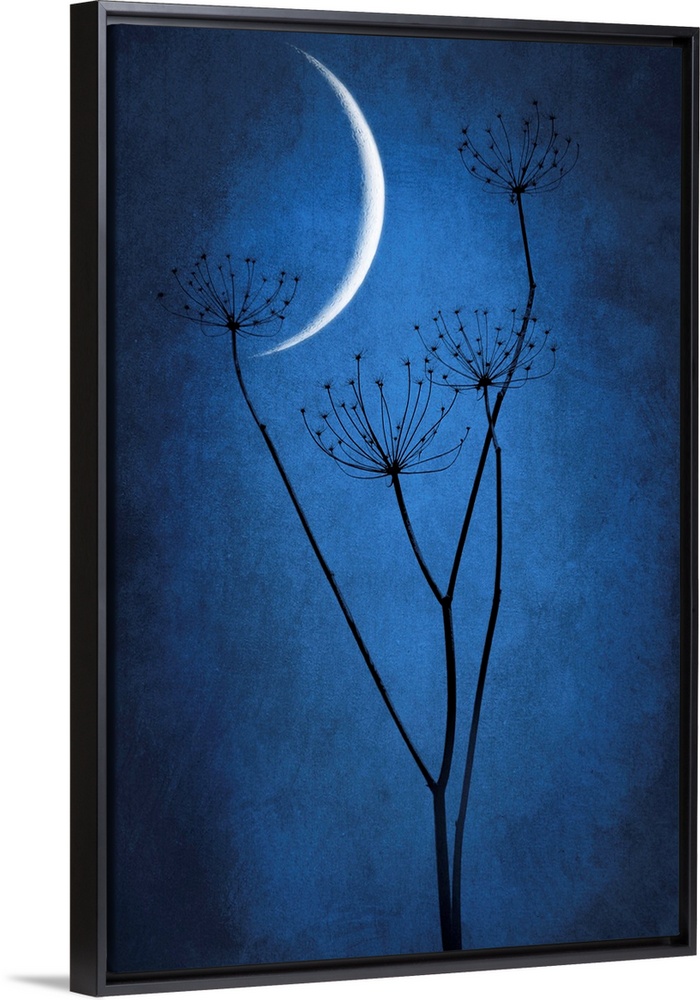 <p>Crescent moon with grass in the foreground. Dominant blue</p>