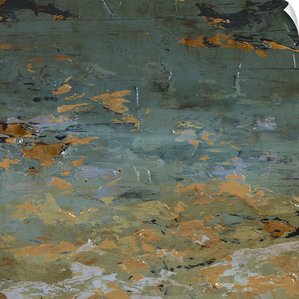 <p>Abstract artwork that has the appearance of wood whose paint layers have begun to chip off.</p>
