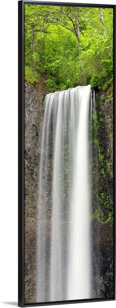 <p>A tall waterfall in a green forest in Oregon.</p>
