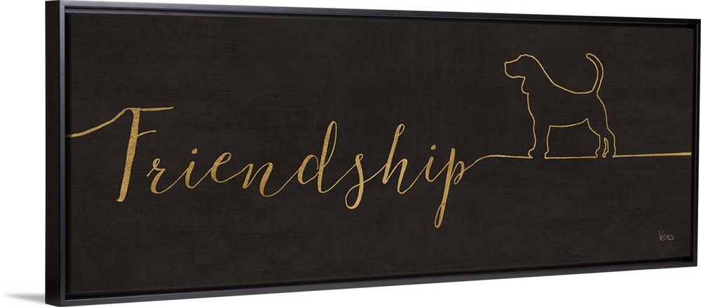 <p>"Friendship" with the outline of a dog on a textured black background.</p>