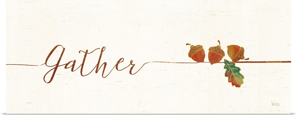 <p>Horizontal artwork of "Gather" in handwritten text with a a few acrons.</p>