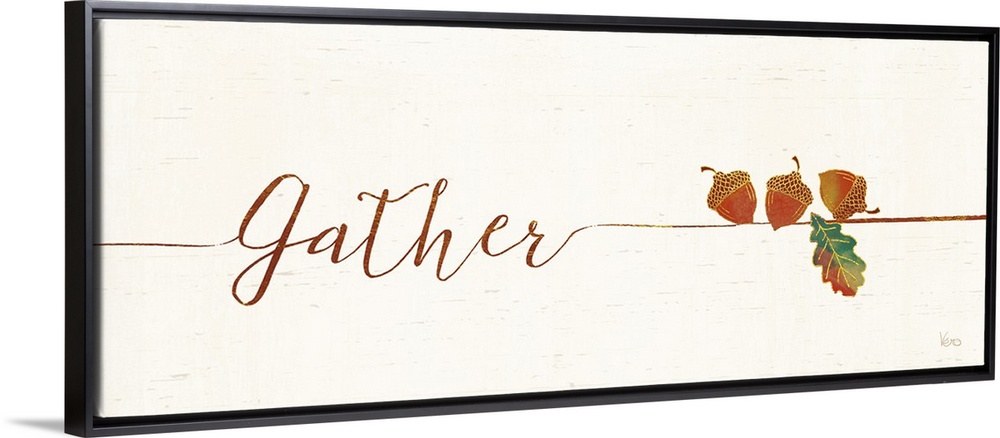 <p>Horizontal artwork of "Gather" in handwritten text with a a few acrons.</p>