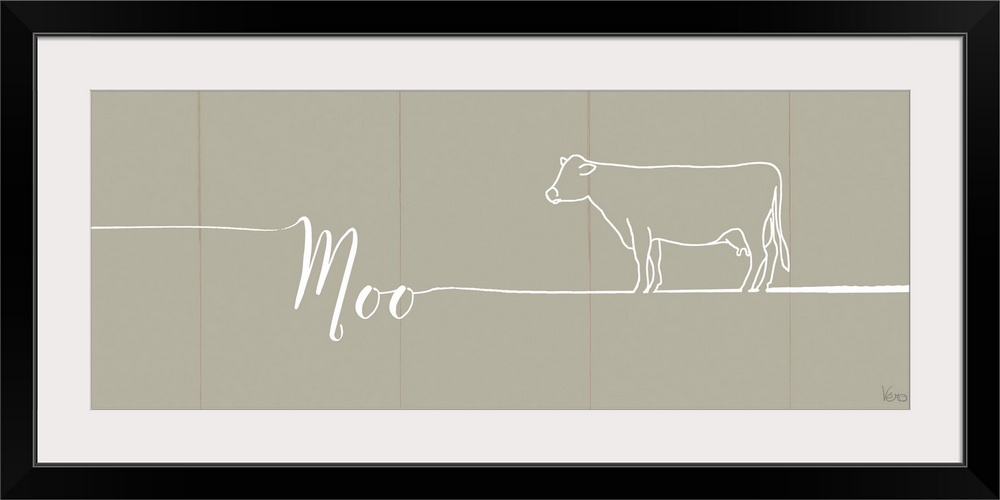 <p>"Moo" with the outline of a cow on a beige plank background.</p>