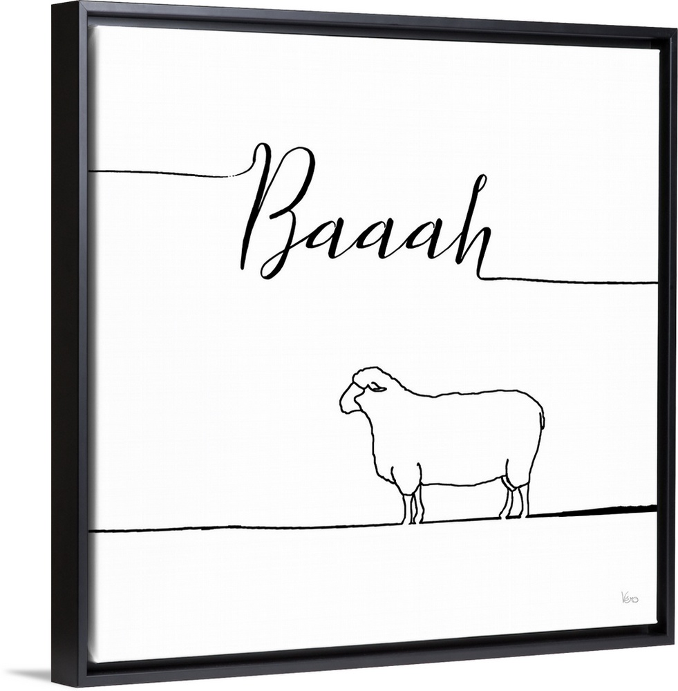 <p>A simple black and white design of a sheep with the text "Baaah".</p>