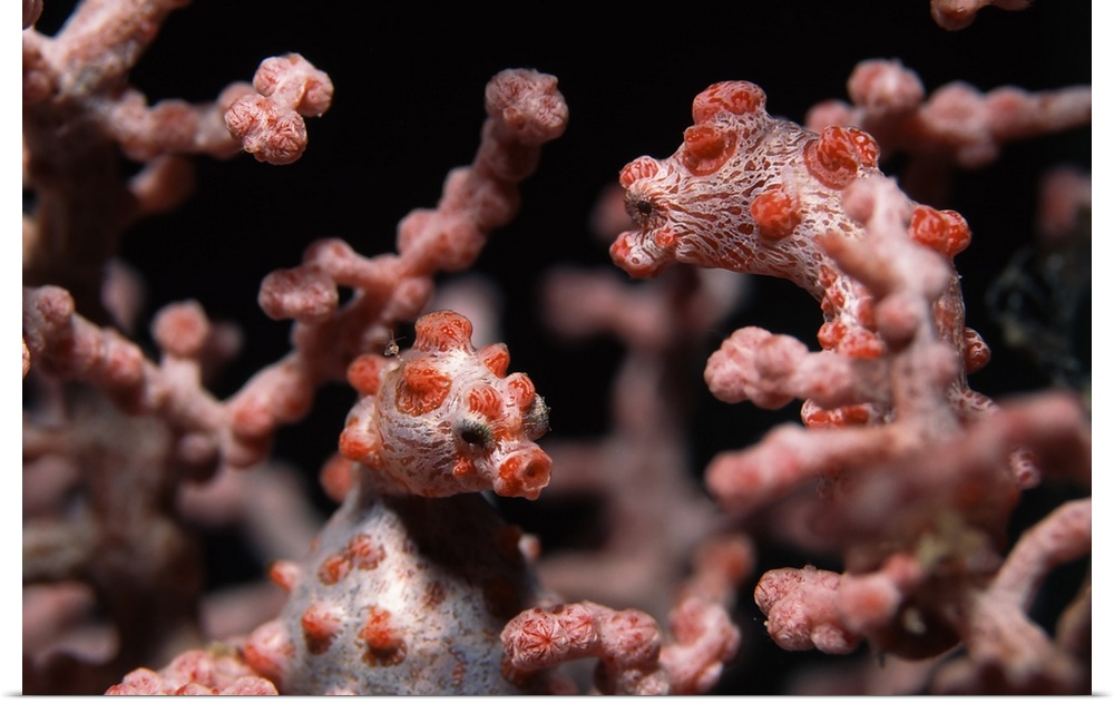 <p>Underwater scene of pair of Pygmy seahorses (Hippocampus bargibanti), Banda Sea, Sulawesi, Indonesia</p>