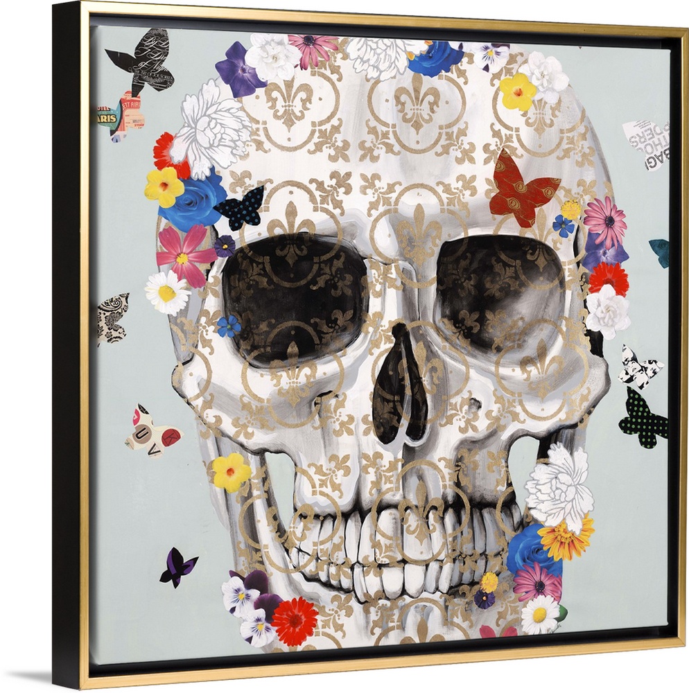Art Maximalism Contemporary Art Wildlife Sydney Edmunds Grey Wall Art Painting Skulls Wildlife Insect and Arachnid Butterfly