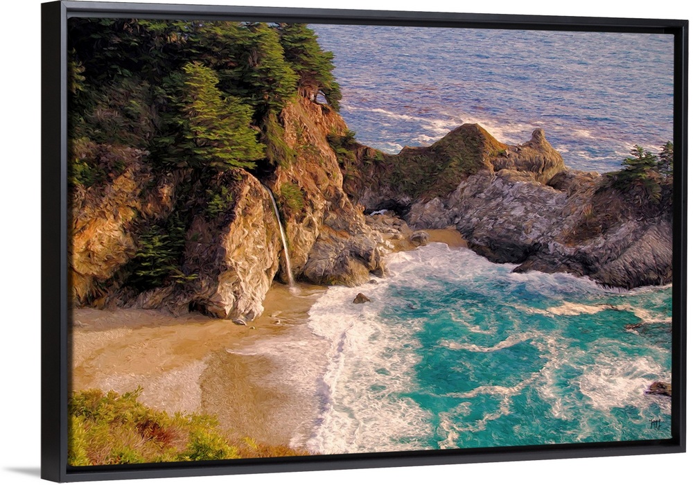 <p>One of the treasures of Big Sur is the 80-foot waterfall known as McWay Falls, which flows to a small secluded beach or, when the tide is high, directly into the Pacific Ocean. The pristine teal waters of the inlet called McWay Cove excite the senses. The unexpected rock formations, trees, flowers and other plants add touches of beauty to the scene.</p>