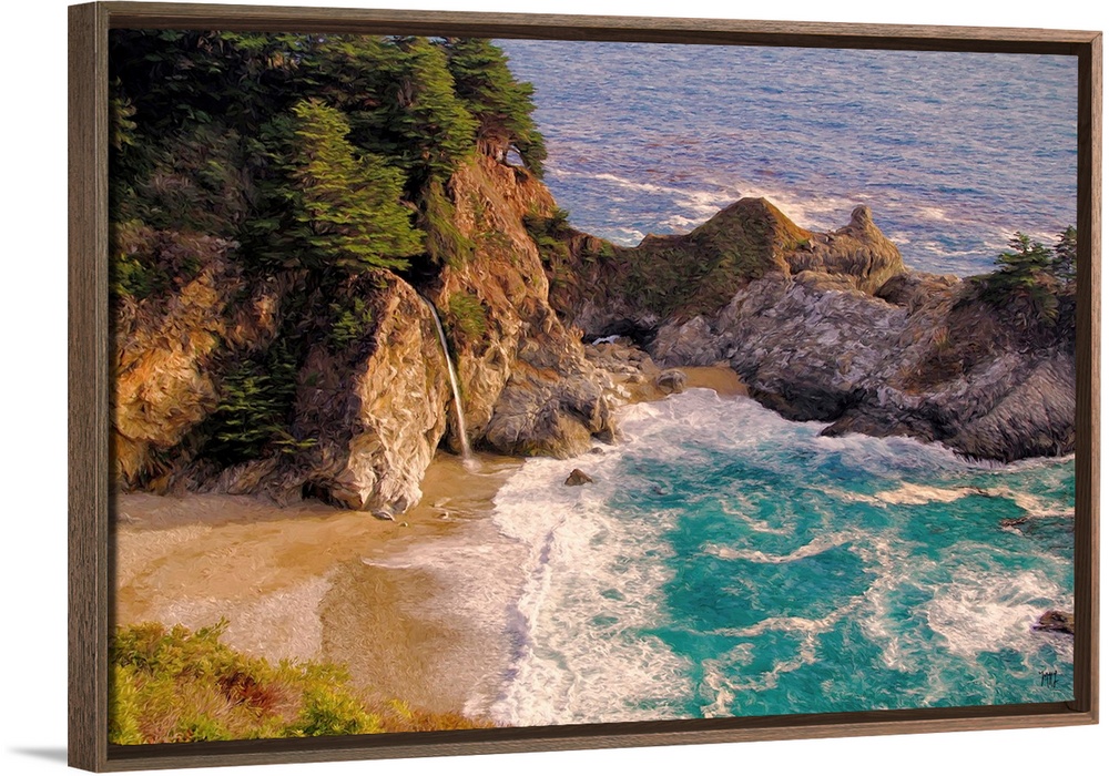 <p>One of the treasures of Big Sur is the 80-foot waterfall known as McWay Falls, which flows to a small secluded beach or, when the tide is high, directly into the Pacific Ocean. The pristine teal waters of the inlet called McWay Cove excite the senses. The unexpected rock formations, trees, flowers and other plants add touches of beauty to the scene.</p>