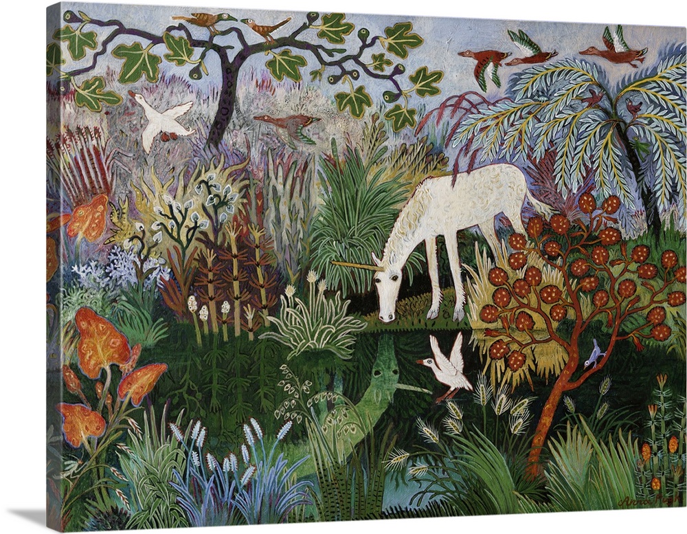 Art Contemporary Art Fantasy Unicorns Folk Art Green Wall Art Landscapes Lake Painting Anna Pugh Wildlife