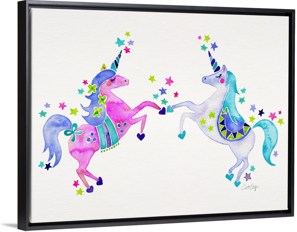 Art Children's Art Girls Room Cat Coquillette Decorative Art Fantasy Unicorns Painting Watercolor