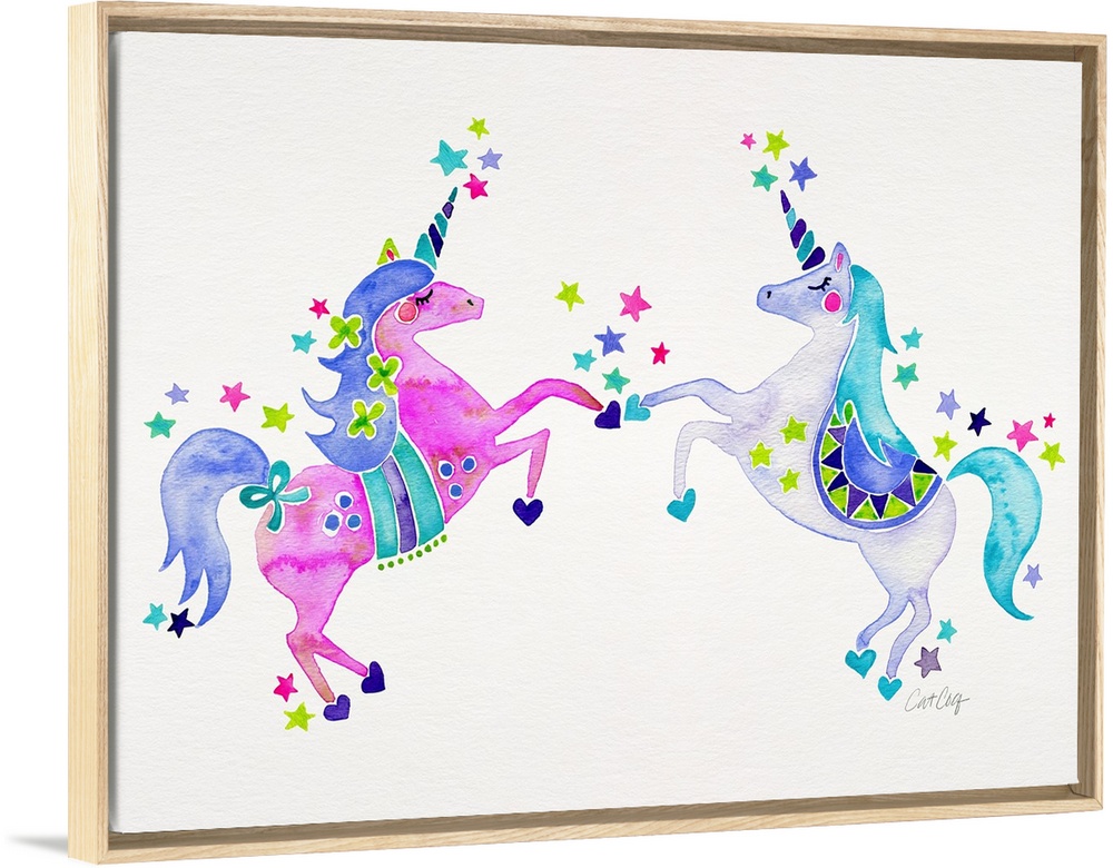 Art Children's Art Girls Room Cat Coquillette Decorative Art Fantasy Unicorns Painting Watercolor