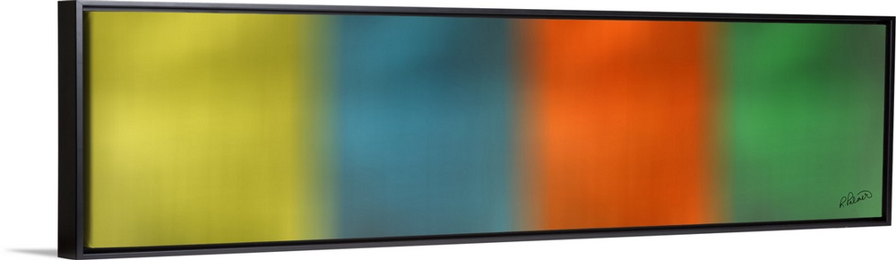 <p>A long horizontal design of blurred squared colors that faded into each other.</p>