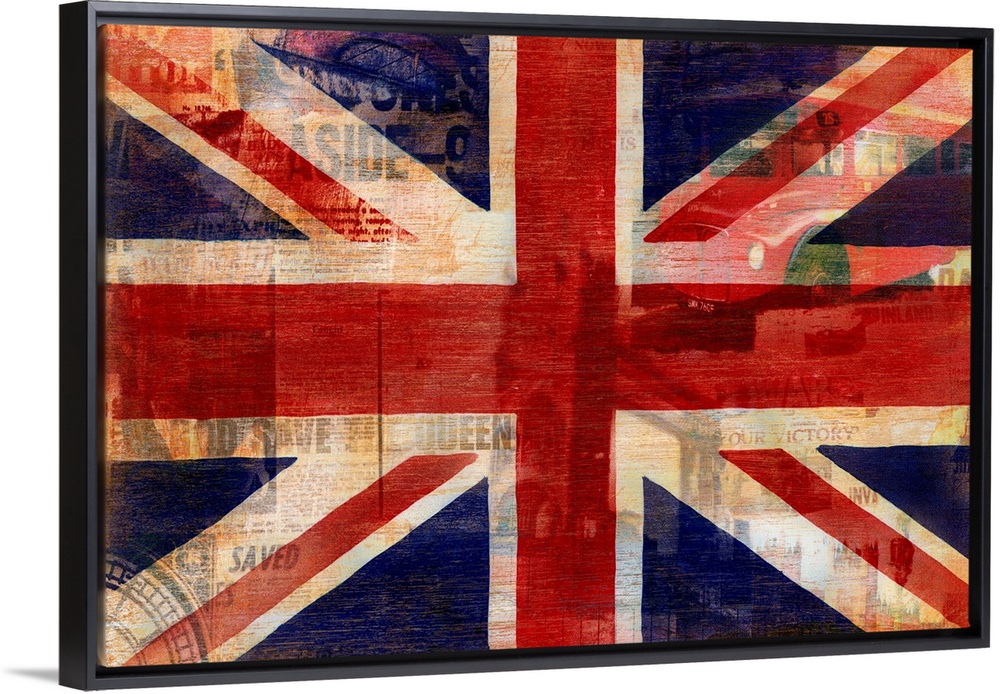 <p>Photo print on canvas of a retro flag overlaid with images.</p>