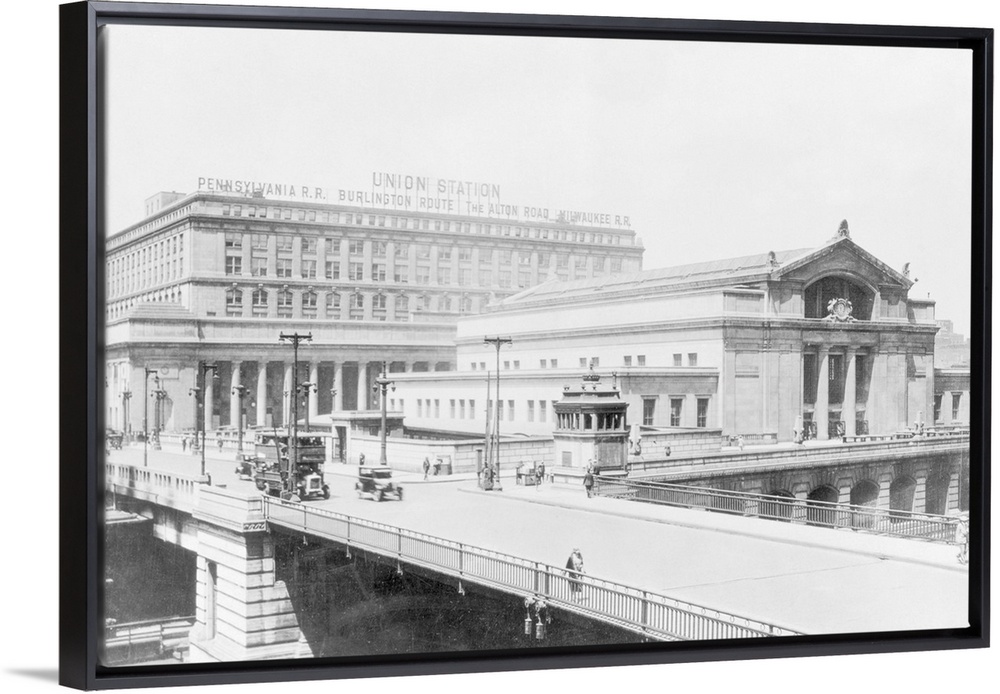 <p>Chicago, IL: Union Station in Chicago, completed in 1925, was built jointly by the Pennsylvania, Burlington, and St. Paul Systems. This station also is used by the trains of the Chicago and Alton Railroad. Its design includes many new features and improvements-the best of everything that has been developed by architectural and engineeering science for comfort and efficientcy in handling a vast passenger traffic. The construction of this station, with its approach tracks practially through the heart of Chicago, involved difficulties in some respects greater then those ever before incountered in a similar undertaking.</p>
