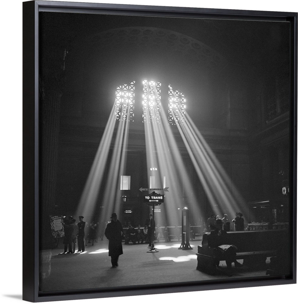 <p>Shafts of light from a high window at Union Station waiting room, Chicago, Illinois, USA. Photographed in 1943.</p>