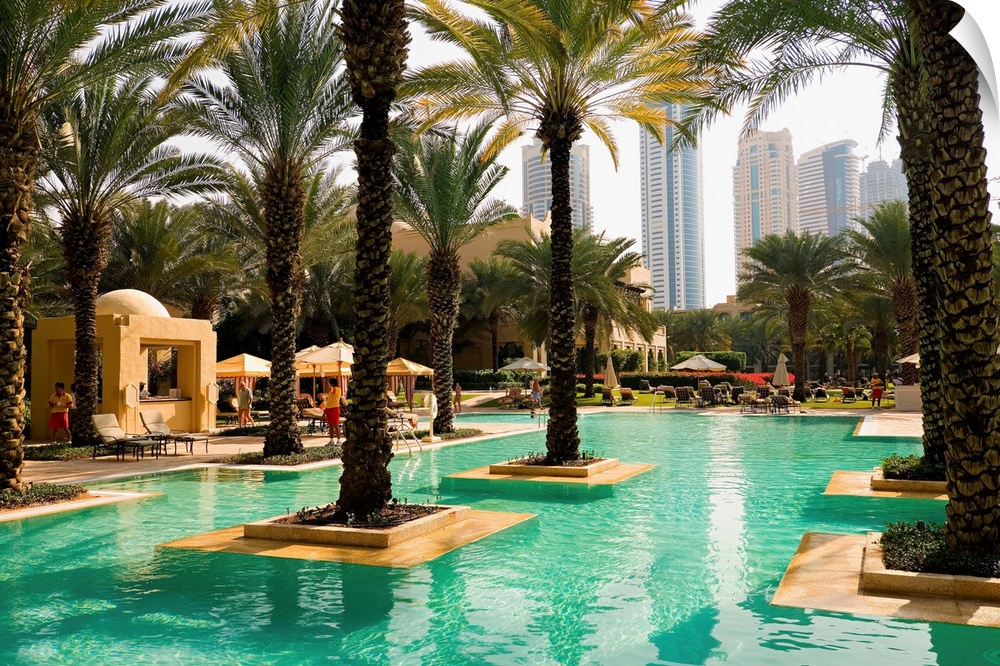 <p>United Arab Emirates, Dubai, Dubai City, Dubai Marina quarter, One and Only Royal Mirage Resort, the pool</p>