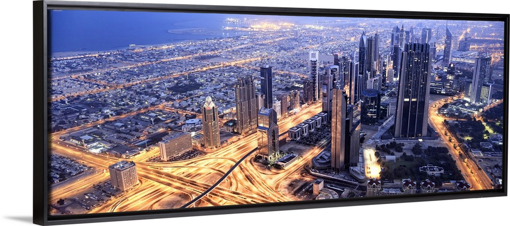 <p>United Arab Emirates, Dubai, Dubai City, Arab states of the Persian Gulf, Dubai skyscrapers overview from Burj Khalifa, the tallest building in the world.</p>