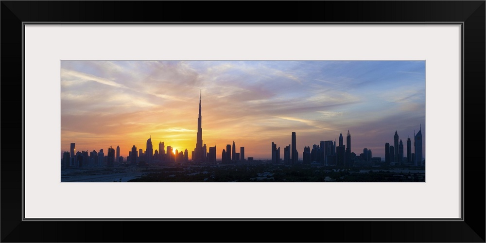 <p>United Arab Emirates, Dubai, elevated view of the new Dubai skyline, the Burj Khalifa, modern architecture and skyscrappers on Sheikh Zayed Road.</p>