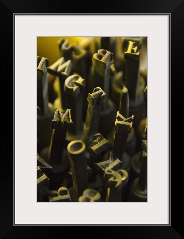 <p>United Kingdom, Bristol, close up of fonts from antique book binding</p>
