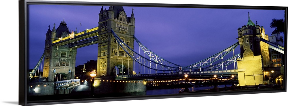 <p>Panorama of London's iconic Tower Bridge at night.</p>