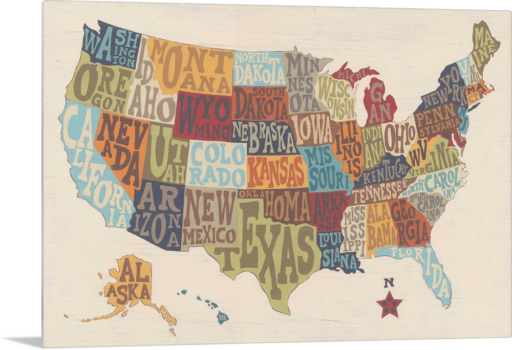 Art Decorative Art Maps Art Maps Maps by Continent Painting United States Typography & Calligraphy June Erica Vess