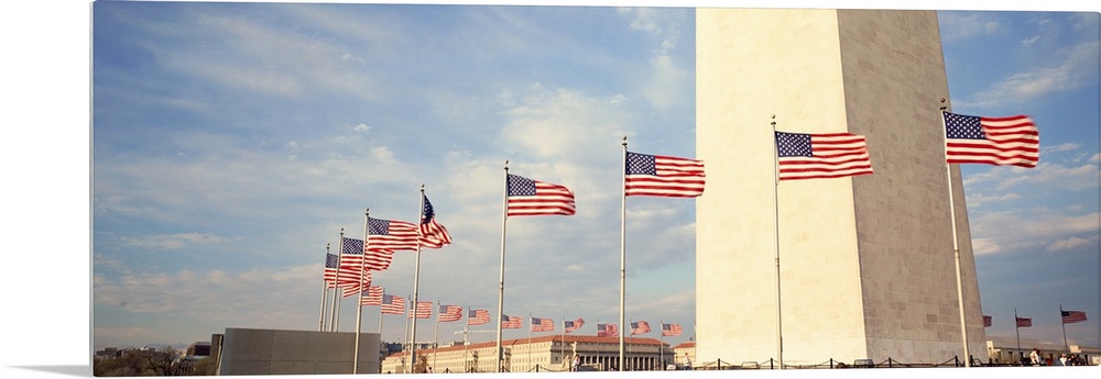 <p>United States Flags at the base of Washington Memorial in Washington D.C.</p>