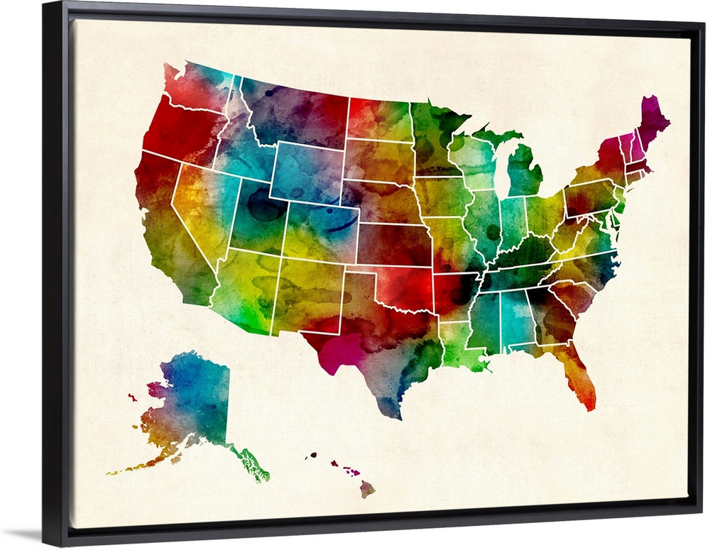 Art Maps Art Maps Maps by Country United States Maps Painting United States Michael Tompsett Watercolor