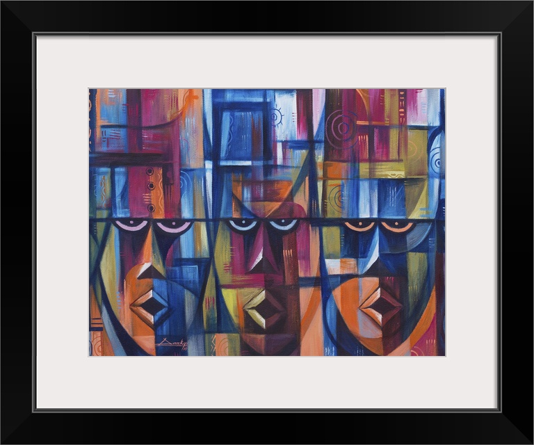 <p>It is good to come together as one when engaged in decision making, planning, etc. We are different shades of color, but we are all one people, believes Bright Dankyi Mensah as he paints for peace. My call for unity is like this: alone, a broomstick can easily be broken. But a bunch of broomsticks tied together will be difficult to break. Painting with a palette of acrylics, he reveals three faces that appear like the masks of sage tribal elders.</p>