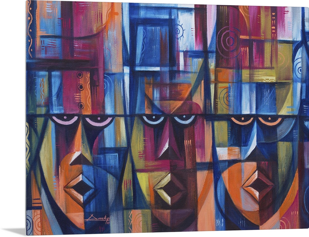 <p>It is good to come together as one when engaged in decision making, planning, etc. We are different shades of color, but we are all one people, believes Bright Dankyi Mensah as he paints for peace. My call for unity is like this: alone, a broomstick can easily be broken. But a bunch of broomsticks tied together will be difficult to break. Painting with a palette of acrylics, he reveals three faces that appear like the masks of sage tribal elders.</p>
