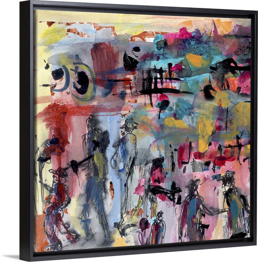 <p>Abstract acrylic painting with figures, artistic background.</p>