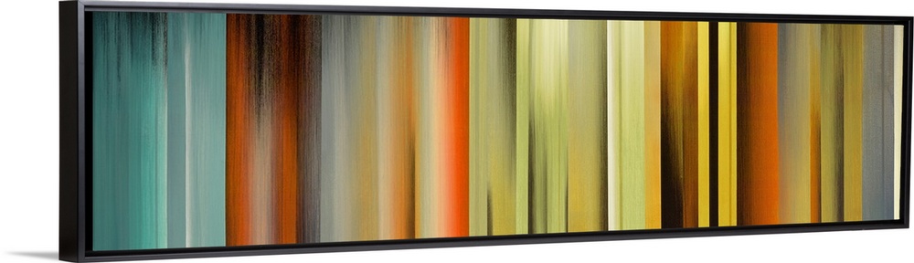 <p>Panoramic abstract art incorporates vertical rectangles of varying widths with a wide range of different colors sheared within each shape.</p>