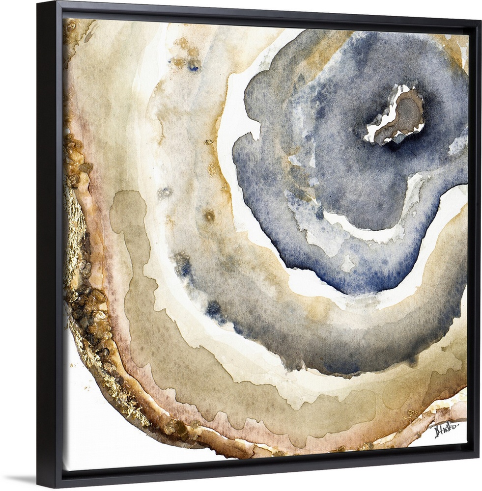 <p>This contemporary artwork offers the intricacies of sliced agate completed in watercolors with gold accents.</p>