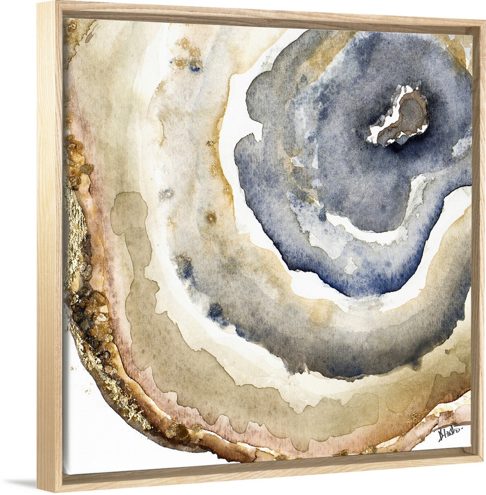<p>This contemporary artwork offers the intricacies of sliced agate completed in watercolors with gold accents.</p>