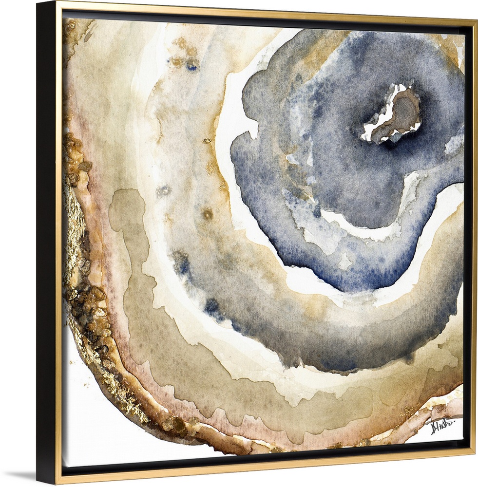 <p>This contemporary artwork offers the intricacies of sliced agate completed in watercolors with gold accents.</p>