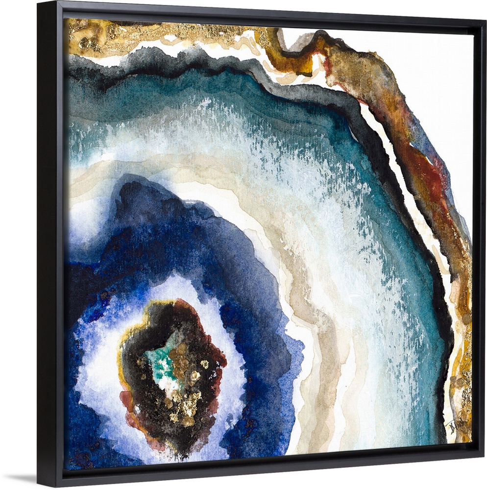 <p>This contemporary artwork offers the intricacies of sliced agate completed in watercolors with gold accents.</p>
