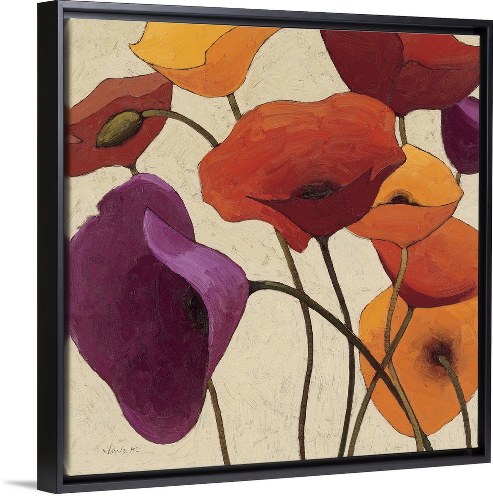 <p>This decorative accent is a square contemporary painting of stylized poppy flowers against a neutral backdrop.</p>