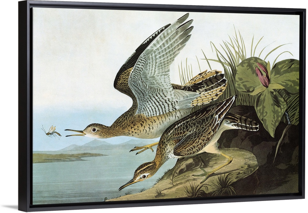 <p>Upland Sandpiper (Bartramia longicauda), formerly known as Bartram's Sandpiper or Upland Plover. Engraving after John James Audubonfor his 'Birds of America,' 1827-38.</p>